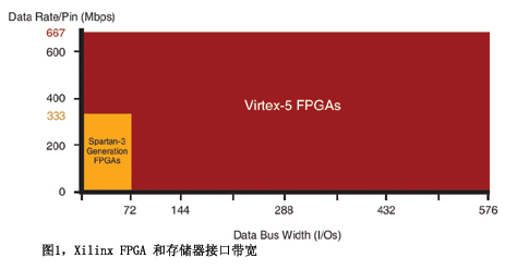 對于將存儲器接口帶寬推至極限的應(yīng)用,如每引腳 667 Mbps 的 DDR2 SDRAM,Xilinx 提供了 Virtex-5 FPGA。