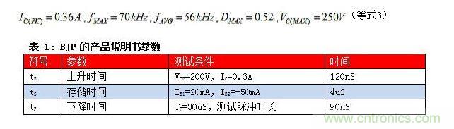 集電極反向恢復(fù)電荷(Qr)數(shù)量可用來估算開關(guān)損耗時間段t3。根據(jù)BJT產(chǎn)品說明書,參數(shù)Qr的計算結(jié)果為36nC。