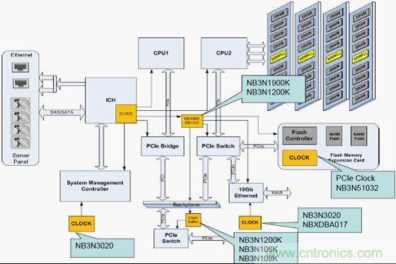 服務(wù)器平臺有3種時鐘拓?fù)浣Y(jié)構(gòu):內(nèi)部系統(tǒng)時鐘、混合系統(tǒng)時鐘和外部系統(tǒng)時鐘。針對PCIe外部時鐘架構(gòu),安森美半導(dǎo)體提供多種專用時鐘選擇,包括時鐘產(chǎn)生器(NB3N3002/NB3N5573/NB3N51034/NB3N51054/NB3N51054/NB3N