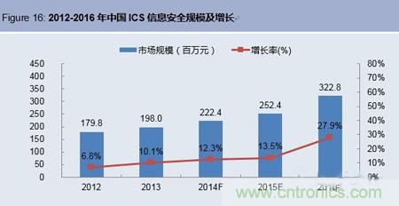 目前中國政府正在加速推進(jìn)ICS等級(jí)保護(hù)標(biāo)準(zhǔn)的制訂,預(yù)計(jì)2016-2017年將有望在工控行業(yè)中全面實(shí)施,屆時(shí)將成為推動(dòng)ICS信息安全市場發(fā)展的重要驅(qū)動(dòng)因素, ICS信息安全市場將會(huì)呈現(xiàn)爆發(fā)式的增長。