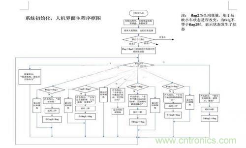 軟件系統(tǒng)中也按模塊編程,包括:1)人機(jī)交互模塊,2)電機(jī)驅(qū)動PWM運(yùn)算模塊,3)平衡控制計算模塊,4)運(yùn)行軌跡尋找與跟蹤模塊,信號檢測及標(biāo)度模塊,5)系統(tǒng)協(xié)調(diào)模塊