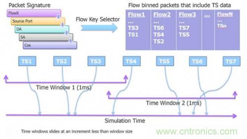 硬件仿真的標(biāo)志之一是,它能對大型復(fù)雜系統(tǒng)進(jìn)行復(fù)雜性能分析。某些情況下,可能需要數(shù)百萬個(gè)數(shù)據(jù)包才能切中當(dāng)前設(shè)計(jì)中穩(wěn)態(tài)分析的要點(diǎn)。以測量百萬兆以太網(wǎng)交換機(jī)的流量比特率為例??梢圆捎锰摂M以太網(wǎng)簽名生成和數(shù)據(jù)包時(shí)間戳 (TS) 來計(jì)算這些測量。