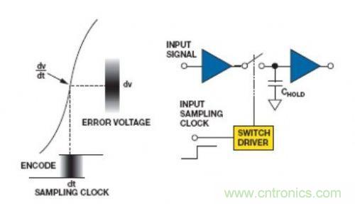 總抖動會產(chǎn)生誤差電壓,ADC總SNR的限制因素為