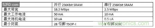 所有這些發(fā)展趨勢(shì)都指向一個(gè)要求:一個(gè)小巧、能夠只扮演緩存的角色、并能使用最小數(shù)量的引腳相連的外置SRAM。串行SRAM就是專為滿足這個(gè)要求而量身定做的。存儲(chǔ)器在高速性能并非最重要因素的其它存儲(chǔ)器(DRAM、閃存等)中,串行接口已經(jīng)取代了并行接口。由于存在需要SRAM的應(yīng)用,串行SRAM在SRAM市場(chǎng)中一直處于小眾地位。在空間非常有限的特定應(yīng)用中,它們一直是低功耗、小尺寸替代方案。目前,在峰值時(shí)鐘速率為20MHz(10MB/s帶寬)條件下,串行SRAM最大容量為1Mbit。相比之下,并行SRAM的帶寬高達(dá)250MB/s,并支持最大64Mbit的容量。下表對(duì)比了一個(gè)通用型256Kbit并行SRAM和一個(gè)256Kbit串行SRAM。