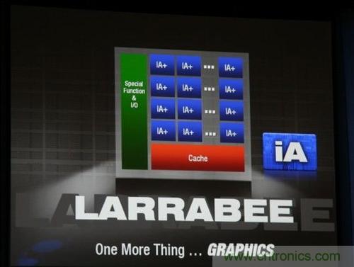在2007年的IDF上,Intel正式揭開獨立顯卡——代號“Larrabee”的神秘面紗,Larrabee隸屬于其萬億次運算項目(Tera-scale),也將是Intel的第一款實用級萬億次運算處理器,其處理能力“大大超過”一萬億次浮點每秒;根據(jù)Intel首席架構(gòu)師EdDavis的演示文稿,Larrabee基于可編程架構(gòu),主要面向高端通用目的計算平臺,至少有16個核心,主頻1.7-2.5GHz,功耗則在150W以上,支持JPEG紋理、物理加速、反鋸齒、增強AI、光線追蹤等特性。