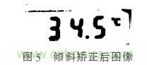 由圖4(b)可以看出,經(jīng)膨脹處理和邊緣檢測(cè)后的圖像可以將液晶屏數(shù)字的輪廓勾勒出來(lái)。對(duì)圖4(b)進(jìn)行霍夫變換,可以獲取圖像中每條線段的端點(diǎn),進(jìn)而可以求其反正切函數(shù),即求得每條線段與橫軸之間的夾角。對(duì)其余傾斜角求取平均值,即認(rèn)為是圖3(c)的傾斜角度。