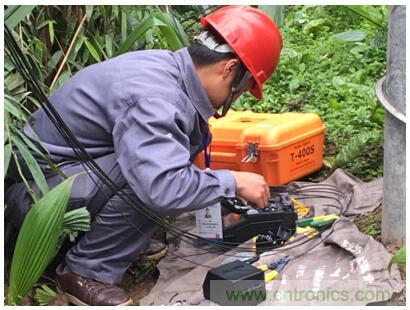 野外現(xiàn)場——第一時間趕到現(xiàn)場,通過住友電工T-400S熔接機快速接續(xù)線路,保障網(wǎng)絡(luò)暢通
