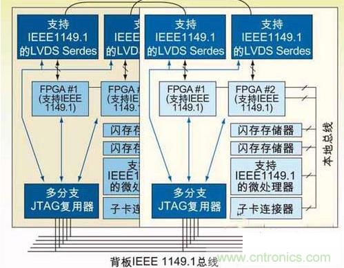 當(dāng)能夠?qū)σ粋€背板上的多板卡系統(tǒng)級使用到JTAG的特性時(shí),就實(shí)現(xiàn)了下一代JTAG接入。在這種環(huán)境下,仍然能夠單獨(dú)實(shí)現(xiàn)單板卡級JTAG功能,而且 還可以利用到板卡間的功能。這一代JTAG應(yīng)用不 但促進(jìn)了單板卡上不同規(guī)則的設(shè)計(jì)團(tuán)隊(duì)相互合作,也促進(jìn)了整個系統(tǒng)下不同板卡設(shè)計(jì)團(tuán)隊(duì)之間的合作。如果在上一代JTAG應(yīng)用中采用了一個JTAG多路器,那 么這個多路器支持多支路(mulTI-drop)接入。采用一種尋址方案,可以將串行JTAG總線用于多支路配置,提供對多板卡的支持。而一旦JTAG能 夠接入一塊背板上的多個板卡,就能實(shí)現(xiàn)系統(tǒng)級的配置或編程(例如,JTAG可以并行接入多塊板卡)。