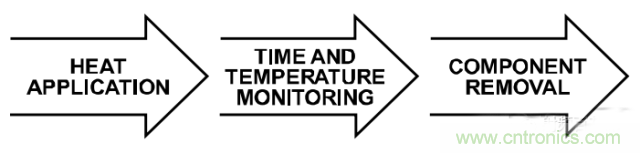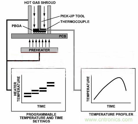 可使用不同的工具來(lái)移除器件。為了移除器件,可能要加熱器件,直至焊料回流,然后在焊料仍處于液態(tài)時(shí)通過(guò)機(jī)械手段移除器件??删幊虩峥諝夥敌尴到y(tǒng)可提供受控溫度和時(shí)間設(shè)置。