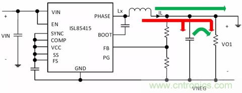 圖5. 將ISL85415降壓轉(zhuǎn)換器配置成反相降壓-升壓轉(zhuǎn)換器