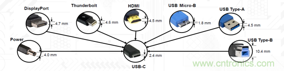 圖1:標(biāo)準(zhǔn)USB-C接口可以替代消費(fèi)類設(shè)備中的多個其他接口