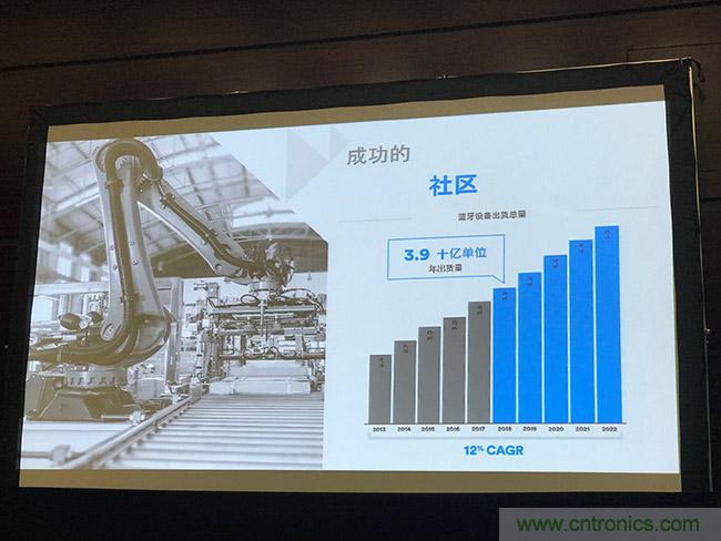 在汽車領(lǐng)域,藍(lán)牙將成為大部分新車的標(biāo)配。2018年,所有新車中高達(dá)86%的新車將具備藍(lán)牙連接功能,藍(lán)牙無線傳感器系統(tǒng)能夠?qū)蓽y(cè)的信息和警報(bào)傳輸?shù)椒?wù)管理解決方案,從而簡(jiǎn)化商業(yè)車隊(duì)及消費(fèi)車輛的維護(hù)。預(yù)計(jì)到2022年,車用設(shè)備出貨量將增長(zhǎng)4.5倍,與智能手機(jī)融為一體的職能車鑰匙將通過藍(lán)牙連接實(shí)現(xiàn)自動(dòng)鎖定和解鎖檢測(cè),自定義座椅設(shè)定,分享虛擬鑰匙的便利功能。