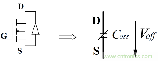 功率 MOSFET 正向截止時可用一電容等效,其容量與所加的正向電壓、環(huán)境溫度等有關(guān),大小可從制造商的手冊中獲得。
