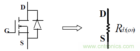 即內(nèi)部二極管的等效電路,可用一電壓降等效,此二極管為MOSFET 的體二極管,多數(shù)情況下,因其特性很差,要避免使用。