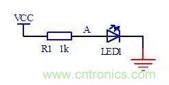 在電源與電路的A之間接入電阻時(shí),A點(diǎn)的電壓就比電源電壓低,可以為發(fā)光二極管提供合適的電壓。電阻R1同時(shí)限制該條支路的電流,保護(hù)發(fā)光二極管不會(huì)因?yàn)殡娏魈蠖鵁龎?,這種電阻在電路中一般稱(chēng)為降壓電阻或者是限流電阻。