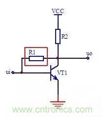 三極管的基極需要直流工作電壓,此時(shí)可以用一只電阻接在直流工作電壓與該三極管基極之間,電源通過(guò)電阻R給基極提供偏置電壓,電阻R1的大小決定了偏置電壓的大小,這種電阻在電路中一般稱(chēng)為偏置電阻。