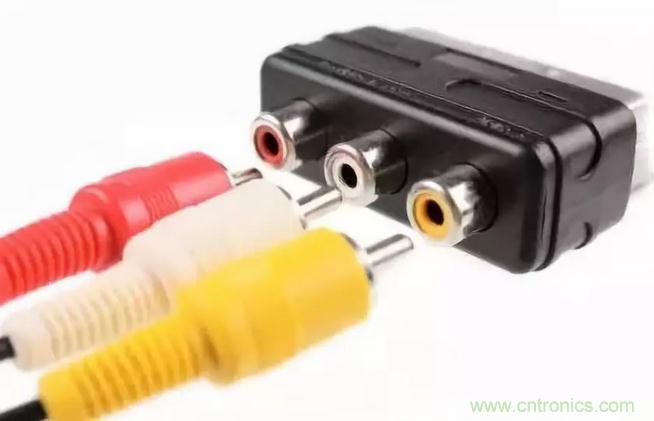 復(fù)合視頻接口是最基本的視頻連接器接口,過(guò)去主要用于家用視頻設(shè)備。這種接口常見(jiàn)于老款電視機(jī)、VCR和家用游戲機(jī),線和端子都是黃色。因?yàn)閷?duì)YUV三種源信號(hào)(Y:亮度,U/V:顏色)進(jìn)行同步復(fù)合(composite),所以稱為復(fù)合視頻。在同一個(gè)信道(line)傳輸亮度和顏色信號(hào),所以畫質(zhì)遠(yuǎn)不如后來(lái)出現(xiàn)的其他接口標(biāo)準(zhǔn)。復(fù)合視頻接口輸出的視頻分辨率最高可達(dá)SD(—standard definition)級(jí),也就是480i(NTSC)或576i(PAL)。模擬視頻連接器通常不包含音頻信號(hào),因此如上圖所示,需要單獨(dú)的音頻線。一般用白色(左)和紅色(右)兩個(gè)連接器傳輸立體聲信號(hào)。