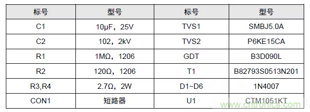 以CAN總線為例,上圖為完善的外圍推薦電路。其中GDT置于最前端,提供一級防護(hù),當(dāng)雷擊、浪涌產(chǎn)生時,GDT瞬間達(dá)到低阻狀態(tài),為瞬時大電流提供泄放通道,將CAN_H、CAN_L間電壓鉗制在二十幾伏范圍內(nèi)。實(shí)際取值可根據(jù)防護(hù)等級及器件成本綜合考慮進(jìn)行調(diào)整,R3 與 R4 建議選用 PTC,D1~D6 建議選用快恢復(fù)二極管,參數(shù)表如下。