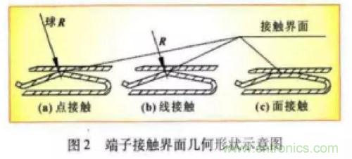 在實(shí)際應(yīng)用中應(yīng)根據(jù)不同的要求選擇不同的接觸界面幾何形狀。其中線接觸和面接觸又會(huì)受端子規(guī)格和外形的影響,形成不同的宏觀接觸面積。