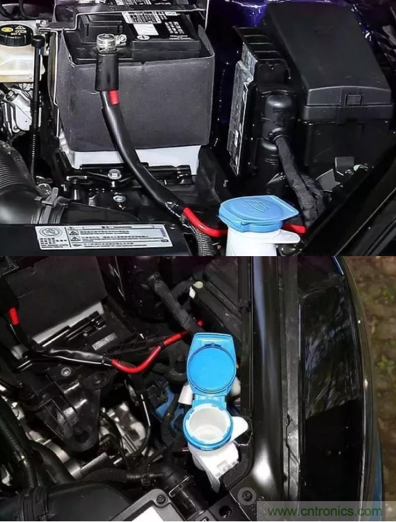 但這不是我們關(guān)注的重點。高爾夫的蓄電池布置在整車左側(cè)靠近駕駛室的地方,機艙電器盒緊挨著蓄電池進行布置。這種布置方式,對于降低線束重量和線束成本非常有利??梢詷O大的縮短蓄電池到機艙保險盒,機艙保險盒到駕駛室保險盒的粗導(dǎo)線的長度。