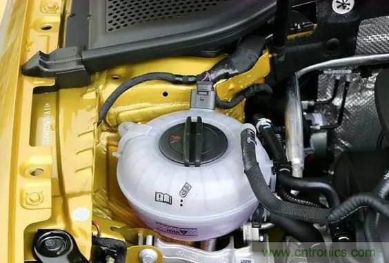 打開高爾夫的機艙蓋,發(fā)現(xiàn)機艙里面的管路,線束顯得有點零亂。