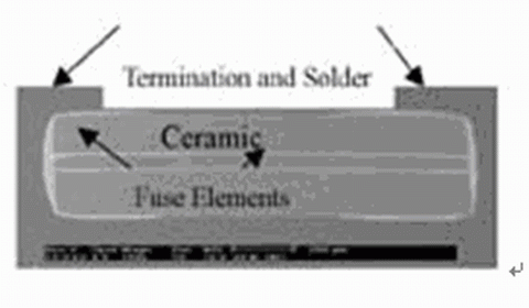 ---這些產(chǎn)品均采用單層熔斷元件設(shè)計(jì),熔斷元件接近熔斷器的表面,滅弧及保護(hù)層較薄。這種設(shè)計(jì)及結(jié)構(gòu)上的缺陷,限制了傳統(tǒng)SMD熔斷器的最大承載電流及額定電壓,在過(guò)載電流較大時(shí),電弧易將保護(hù)層擊穿。