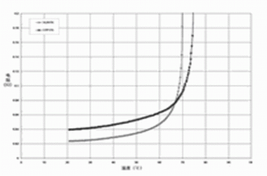 合此式,得出從Ta 到 TSw 動作時間。此式的重要性在于一已知的起始阻抗低切換溫度聚合物PTC組件,在故障期間提供更快速的動作時間,見圖2。當組件接近切換溫度時,該組件的阻抗增加,因此所產(chǎn)生的熱更具效率;切換溫度較低,因此在較短時間內(nèi)就能達到所需的溫度變化。