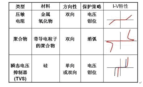 安森美半導(dǎo)體來自美國的ESD保護(hù)專家Robert Ashton博士說,一般而言,ESD保護(hù)元件的分類可以通過其保護(hù)策略與方向性來進(jìn)行,主要包括壓敏電阻、聚合物和瞬態(tài)電壓抑 制器(TVS)等,如表1所示。在這幾種保護(hù)元件中,壓敏電阻在低電壓時(shí),呈現(xiàn)出高電阻,其中的每個(gè)小型二極管兩端的電壓都相當(dāng)?shù)?,同時(shí)電流也相當(dāng)??;而在較高電壓時(shí),其中的獨(dú)立二極管開始導(dǎo)通,同時(shí)壓敏電阻的電阻會(huì)下降。從表1中我們也可以看出壓敏電阻為雙向保護(hù)元件。而對(duì)于帶導(dǎo)電粒子的聚合物而言,在正常電壓下,這些材料擁有相當(dāng)高的電阻,但當(dāng)發(fā)生ESD沖擊時(shí),導(dǎo)電粒子間的小間隙會(huì)成為突波音隙陣列,從而帶來低電阻路徑。