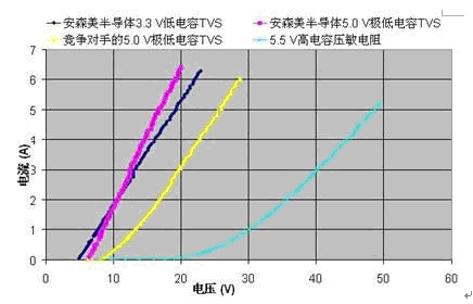 結(jié)合ESD脈沖測(cè)試和TLP測(cè)試,我們可以得出結(jié)論,在不同ESD保護(hù)元件中,TVS元件,特別是安森美半導(dǎo)體的TVS元件的大電流導(dǎo)電率極佳,且在重復(fù)應(yīng)力條件下仍能維持優(yōu)異性能,不存在壓敏電阻或聚合物那樣的使用增多后會(huì)出現(xiàn)性能下降的問題;至于其在電容方面的不足,也隨著新的低電容設(shè)計(jì)的出現(xiàn),而消除了早前的大電容問題。