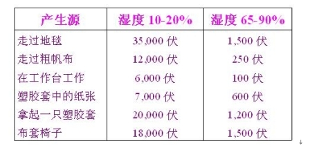 另一方面,濕度亦是一個重要的考量因素。適宜的濕度可降低ESD發(fā)生的機率。(見表2)這也是電子制造廠為何多在南方建廠的原因之一。