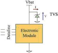例如,為滿足ISO7637-2標(biāo)準(zhǔn),特別是圖1中的1、2、3a和3b的脈沖要求,只使用一個瞬變電壓抑制器(TVS)即可有效保護(hù)車載模塊。