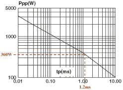以SMAJ24A為例,從產(chǎn)品數(shù)據(jù)表摘取這些參數(shù)與圖11的曲線進(jìn)行比較,發(fā)現(xiàn)SMAJ24A符合ISO7637-2脈沖2測試的要求,可承受長達(dá)1.2ms的360W指數(shù)脈沖,這個數(shù)值遠(yuǎn)遠(yuǎn)高于ISO7637-2脈沖2電涌強(qiáng)制的4μs時長。