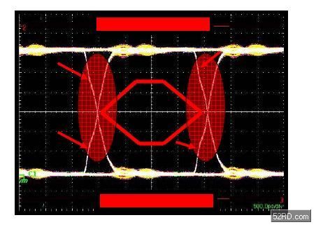 通過在示波器的垂直軸對(duì)數(shù)字信號(hào)進(jìn)行反復(fù)采樣、同時(shí)采用相應(yīng)數(shù)據(jù)率對(duì)水平時(shí)間掃描進(jìn)行觸發(fā)來生成眼圖。所獲得的圖形看上去象眼睛,如圖1所示。“眼睛”越大,數(shù)據(jù)完整性越高。通常采用模板(mask)來對(duì)可接受的信號(hào)質(zhì)量進(jìn)行定義。這模板由“眼睛”中間的六角形和“眼睛”上、下的矩陣組成。如果測得的信號(hào)跡線穿越模板的邊線,那么信號(hào)質(zhì)量就不可接受。USB2.0信號(hào)模板規(guī)范由USB應(yīng)用者論壇(USBIF,www.usb.org)提供,可參見USB2.0版規(guī)范第7.1.2.2章節(jié)。圖1中顯示了帶有詳細(xì)臨界點(diǎn)的眼圖。
