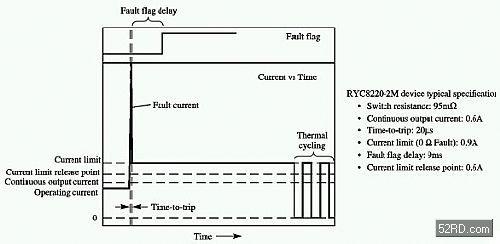 動作時間是指保護(hù)電源開關(guān)器件啟動其電流限制回路的速度。硅元件所具有的極快的動作時間使其成為功率限制應(yīng)用中的最佳選擇。與PPTC元件不同之處在于其動作后的電流值能夠保持在相當(dāng)高的水準(zhǔn),并由電流限制的設(shè)定值來決定。電流限制設(shè)定值是指硅元件一旦動作后將電流所限制到的標(biāo)準(zhǔn),其數(shù)值根據(jù)故障狀態(tài)的嚴(yán)重程度來變化,通常定義為故障電阻的函數(shù)。對于小功率的應(yīng)用,電流限制值應(yīng)該盡量設(shè)低。