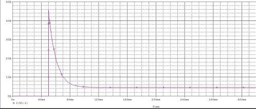 ?。梢哉J(rèn)為在10ms的時(shí)間后電流達(dá)到了穩(wěn)態(tài)電流值,此時(shí)的沖擊電流已經(jīng)下降到初始值的約63%。)