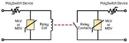 如圖1所示,PolySwitch™PPTC器件可以串聯(lián)在電源輸入端,幫助保護因電路短路、線路過載或者用戶誤操作造成的損壞。另外,在輸入兩端放置金屬氧化物變阻器(MOV)還可提供過壓保護。