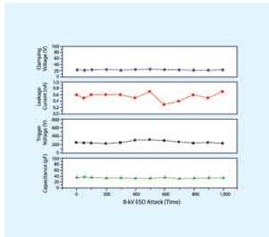 通過采用間隙技術(gap technology),特別是采用空氣作為間隙,已經(jīng)在低電容抑制器、更低漏電流、更低鉗位電壓等方面實現(xiàn)了可觀的性能提升。總之,在重復多次或持續(xù)的 ESD事件后,聚合物間隙抑制器會降級,而空氣間隙器件仍將保持非常低的電容、漏電流和觸發(fā)電壓,即使在1s事件間隔內經(jīng)過1000次ESD事件,也能保持良好的性能。