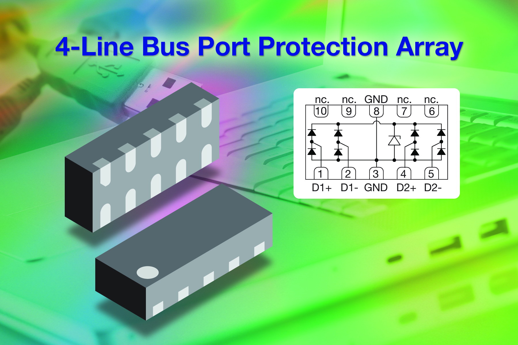 日前,Vishay Intertechnology, Inc.宣布,推出采用新型超小尺寸LLP2510封裝的新款4線ESD保護(hù)陣列---VBUS54ED-FBL。VBUS54ED-FBL的占位面積只有2.5mmx1.0mm,高度低至0.55mm,其低電容和低泄漏電流的特性可以保護(hù)高速信號(hào)線免受瞬態(tài)電壓信號(hào)的損害。