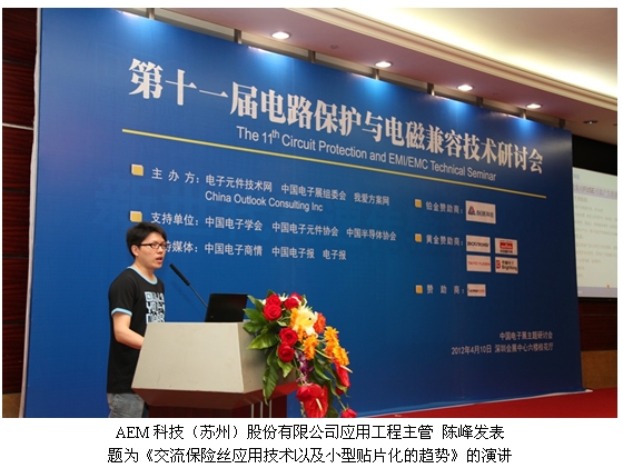 電路保護(hù)專業(yè)技術(shù)與解決方案供應(yīng)商AEM科技股份有限公司于2012年4月10日出席了由CNT Networks、中國電子展組委會和China Outlook Consulting聯(lián)合舉辦的第十一屆電路保護(hù)與電磁兼容技術(shù)研討會。