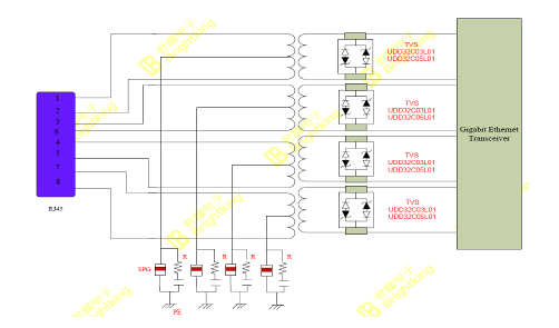 TVS ARRAY RJ45 以態(tài)網(wǎng)接口上的應(yīng)用如下: