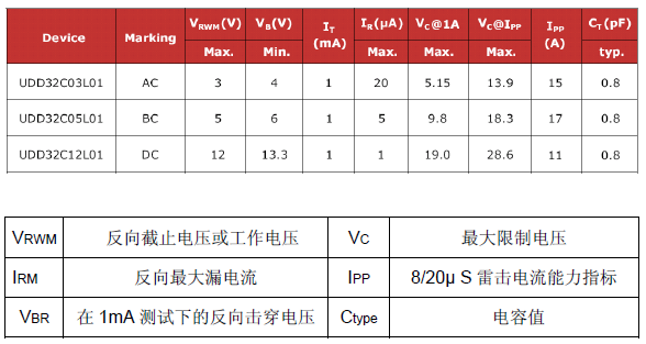 • VRWM :截止電壓必須≥被保護的電路的最大工作電壓