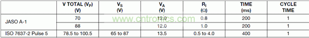 美國的ISO-7637-2 Pulse 5和日本的JASO A-1針對14V動力總成的仿真條件如下表。