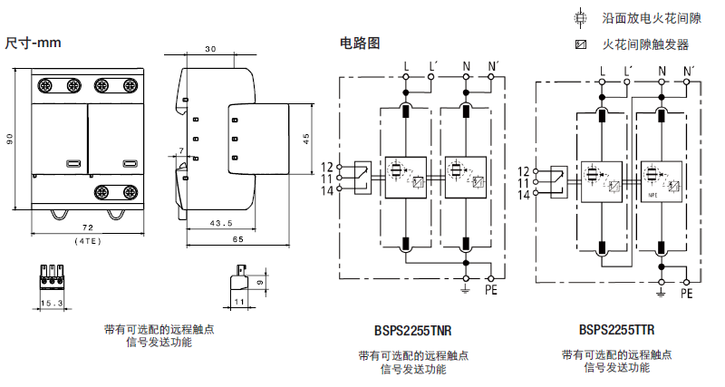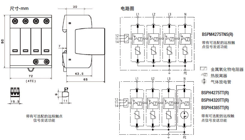 這種四極設備的特點是,用于TNS 230/400V系統(tǒng)("4-0"電路)中防止浪涌。