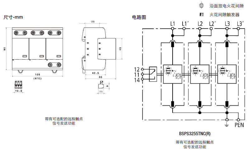 • 由于采用了耐用的氧化鋅變阻器和火花間隙技術(shù),具有很高的浪涌 放電容量