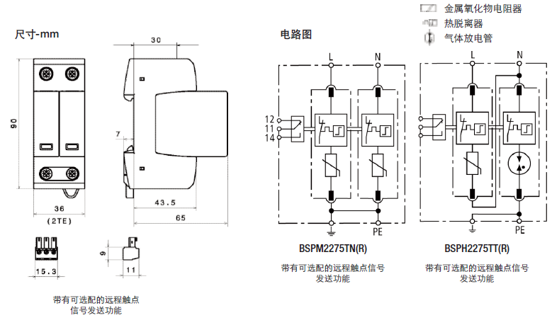 這種雙極設備的特點是,在TN系統(tǒng)中作為一種結(jié)合了避雷器和浪涌保護器的模塊使用(“2-0”電路)。