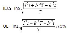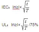 如果保險絲通以一定的電流(Ix)可以永久工作,那么此時保險絲的聚熱與散熱一定處于平衡狀態(tài),此時保險絲的散熱功率為Ix2T。如果尖峰電流產(chǎn)生的能量≤Ix2T,可以認(rèn)為尖峰電流產(chǎn)生的能量不可能使保險絲的溫升大于Ix時的溫升。對于滿足不同的安規(guī)體系,Ix的數(shù)值有所區(qū)別,IEC體系下可以認(rèn)為等于In;UL體系下可以認(rèn)為等于75%In。
