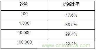 >> 預(yù)測100億次(2萬小時+)和1000億次(20萬小時+)的脈沖折減比率期望值分別為:2.6%和2%。但是基于現(xiàn)有數(shù)據(jù)預(yù)測是有誤差的,從統(tǒng)計學(xué)的角度,有95%的把握分別落在(1.3%, 3.8%)(1%, 3.1%)范圍內(nèi)。在實際計算中,我們都取下限作為計算標(biāo)準(zhǔn)。