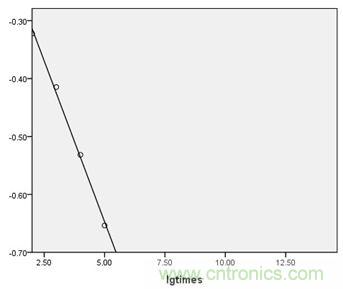 2.2 如果要達(dá)到2萬小時的壽命,保險絲需要經(jīng)受近100億次的沖擊,而此數(shù)據(jù)很難利用實驗數(shù)據(jù)達(dá)到,所以在此根據(jù)已有的信息作趨勢分析。分析步驟如下: