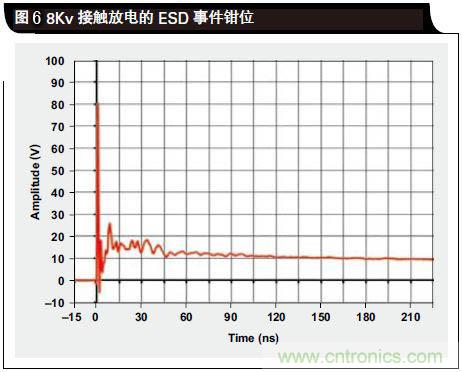 把鉗位電壓波形下面的區(qū)域想像成能量。鉗位性能越好,受保護ESD敏感型器件在ESD事件中受到損壞的機率也就越小。由于鉗位電壓很小,一些TVS可承受IEC模型的8kV接觸式放電,但是“受保護”器件卻被損壞了。