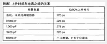 通常,USB 2.0 支持 480Mbps (bits per second) 的數(shù)據(jù)傳輸;DVI 和 HDMI 協(xié)議更是分別支持高達(dá) 8Gbps 和 5Gbps 的數(shù)據(jù)傳輸帶寬。在 USB 2.0、DVI 和 HDMI 的高速數(shù)據(jù)率下,傳統(tǒng)保護裝置的寄生電容可能破壞信號的完整性或令其失真。失真表現(xiàn)為由較慢的上升和下降時間所致的高態(tài)/低態(tài)瞬變的前沿和后沿被修圓。上升和下降時間較慢會給系統(tǒng)帶來一些問題,其中最重要的是時序問題。電路在特定的時間需要穩(wěn)定的“高”態(tài)和“低”態(tài)。隨著各狀態(tài)之間過渡時間的增加,電路有可能檢測到不完整的過渡期,從而將數(shù)據(jù)誤差引入系統(tǒng)。附表1是不同寄生電容 ESD 抑制器件對數(shù)據(jù)上升沿時間 (10%至90%高電平) 所造成的影響比較。